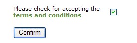 After updating the e-mail address accept the terms and press Confirm.